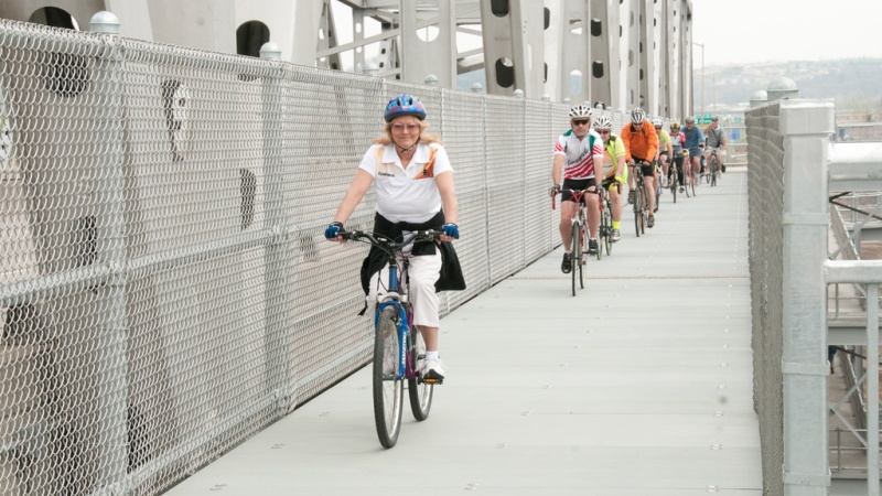 MoDOT works with planning partners to create transportation facilities that work for all users because we value bicycle and pedestrian travel. Accommodating for bicyclists or pedestrians may be as simple as providing a well-designed road that all road users share or as complex as a separate-grade structure, such as a bridge. Developing appropriate facility design for non-motorists depends on a variety of geometric and operational factors that are inter-related, such as available right-of-way, projected traffic counts and adjacent roadway design speeds.