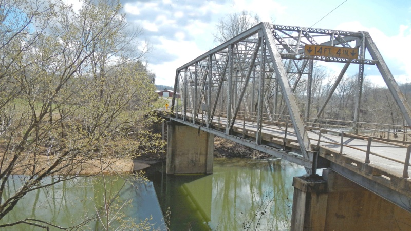 Bridge J0521, locally known as the Dug Hill Bridge, is a 1931, 140’ long, seven-panel, rigid-connected, Pratt through truss constructed from standard Missouri State Highway Department designs. The bridge is 274’ long, total length, with 34’, 40’ and 50’ approach spans—the northern approach span is flared to accommodate turns onto and from the county road to the north. The bridge has concrete abutments with wingwalls and concrete piers. The bents are steel piles with concrete bent cap. The bridge has a 20’ wide roadway, flaring to 36’ at the end of the northern approach span.