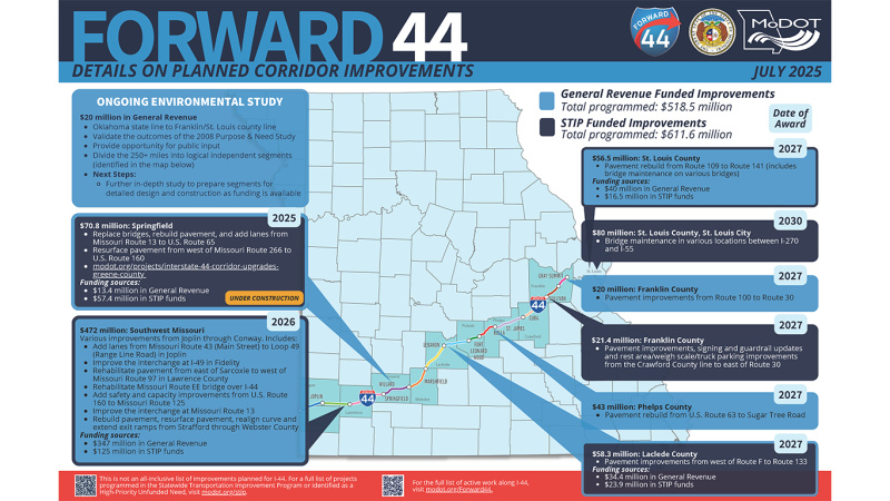 For a full list of the improvements underway and completed along I-44, visit the Forward 44 Projects page.