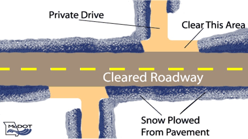As crews clear a path, snow plowed from roads could possibly block a private drive or entrance for some time. MoDOT understands the inconvenience this can cause, but due to limited time and resources, plows can only clear private driveways at the request of local emergency officials.