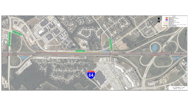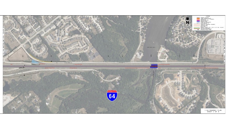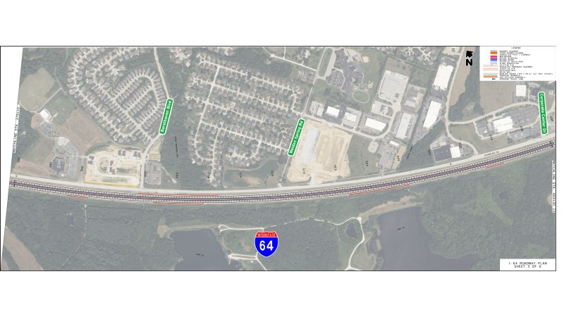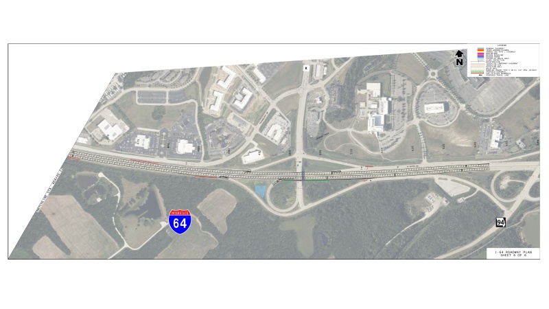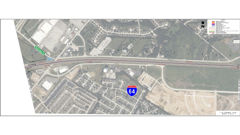 • Addition of a third lane of travel to eastbound and westbound I-64 between I-70 and Route K.