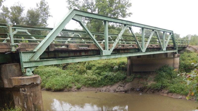 Side view (profile) of Chariton County Route D truss bridge over Mussel Fork creek