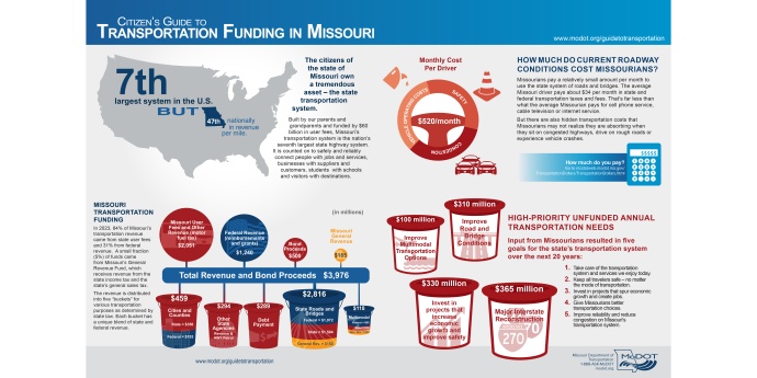 The Citizen's Guide to Transportation Funding is a look at how Missouri's transportation system is funded and supported, including how funds are generated, distributed and what needs are still unmet.