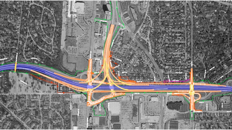 West of Spoede to East of Lindbergh Clayton Warson to West of McKnight McKnight - McCutcheon Area Brentwood - I-170 - Hanley Interchanges Laclede Station to McCausland Skinker to East of Hampton East of Hampton to East of Kingshighway