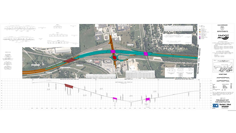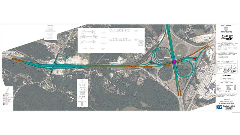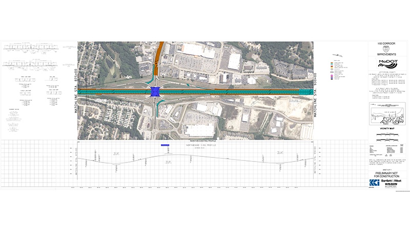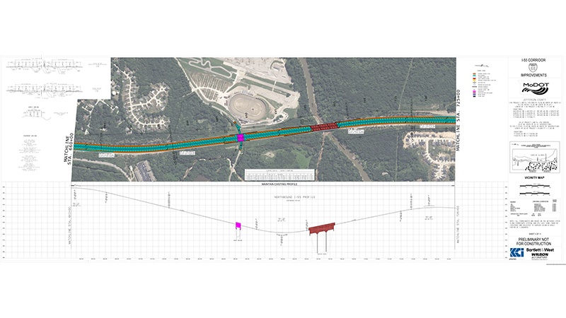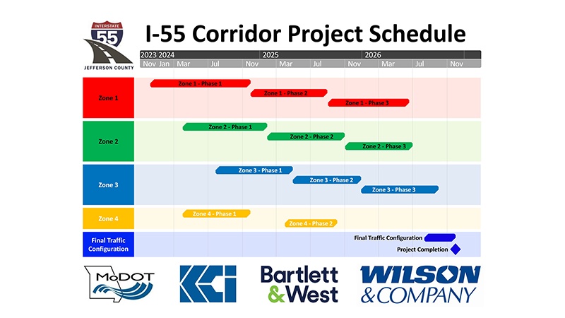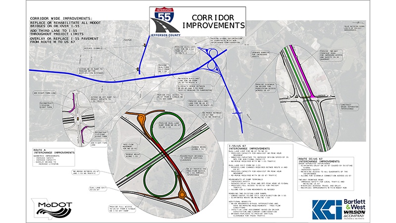 During the first phase of the project, The Missouri Department of Transportation’s (MoDOT) St. Louis District, in conjunction with the Federal Highway Administration, conducted a conceptual study along Interstate 55, from the Route Z interchange to the U.S. 67 interchange in Jefferson County. The first phase of the project involves preliminary design of the recommended alternative, additional study of traffic patterns, safety, roadway conditions, noise analysis, and environmental documentation. The final phase of the project is the design/build.