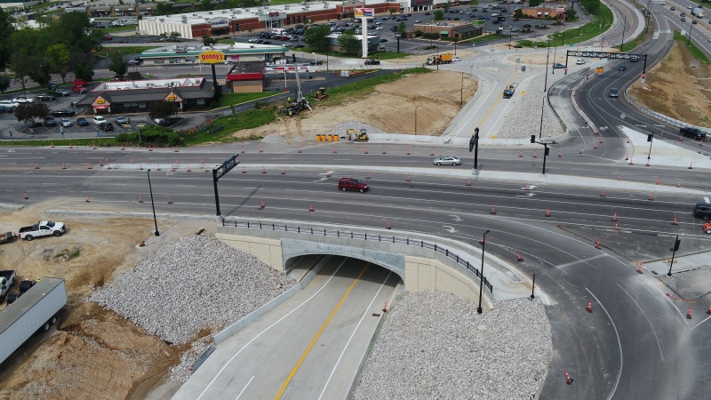 Traffic will be shifted to the new bridges at Zumbehl over I-70 and at Cave Springs over Veterans Memorial Parkway. Current Cave Springs and Zumbehl bridges will be demolished.