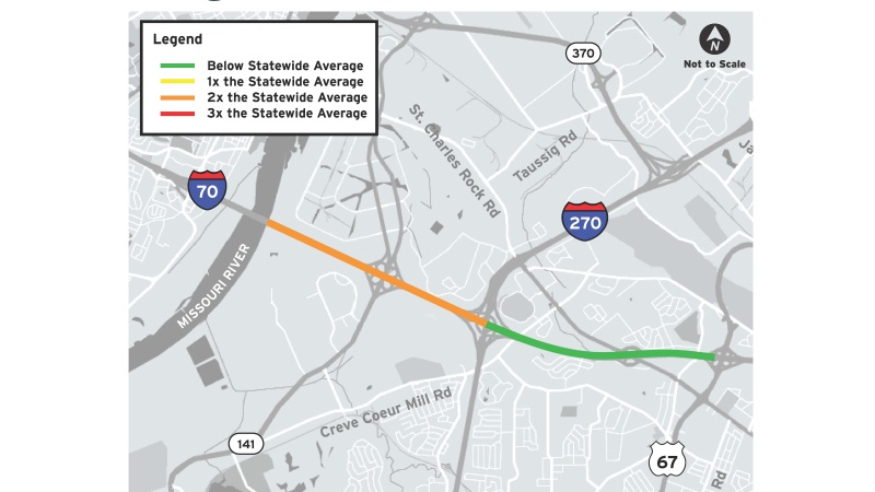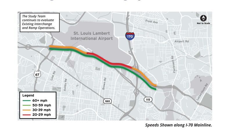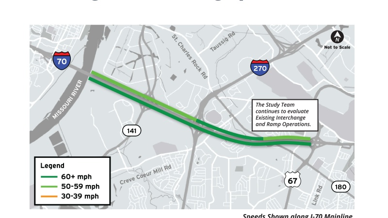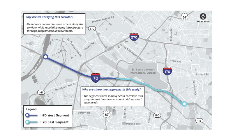 The Missouri Department of Transportation is conducting a conceptual study to identify potential improvements for two adjacent sections of I-70 between the Missouri River and North Hanley Road.
