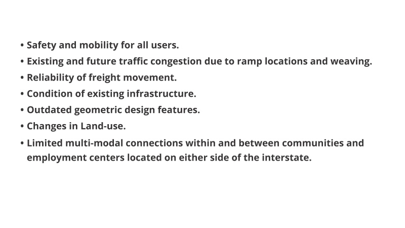 - Goal of Segment 2 - Identify potential improvements to the safety and operations of the corridor, identify corridor needs, and coordinate with proposed improvements by local partners.