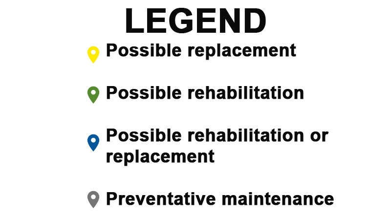 Of those, nine bridges have reached the end of their useful life, and MoDOT is reviewing options. Seventeen bridges should receive some rehabilitation, primarily removing the driving surface (the bridge deck) and replacing it. Although with two bridges, it may be more cost effective to replace them instead of rehabilitating them. Three need preventative maintenance (mostly an overlay).