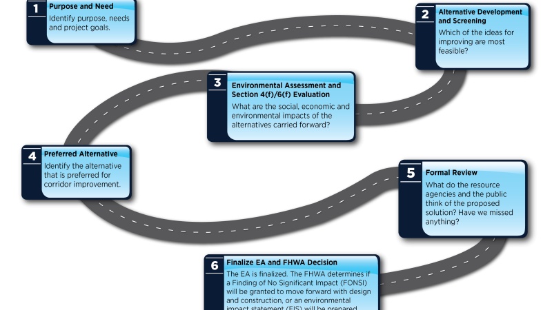 An Environmental Assessment (EA) is a federally required document under the National Environmental Policy Act of 1969 (NEPA) to evaluate potential impacts to the natural and manmade environment. EAs are done to help agencies, elected officials and the public make sound decisions on proposed improvements. There are several steps for EA’s and the public has opportunities for input along the way.