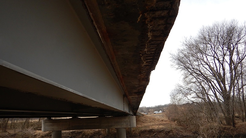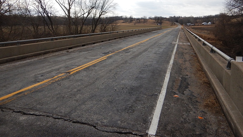 The Cooper County Route O bridge over Moniteau Creek was built in 1966 and the bridge deck is in poor condition. The supporting structures of the 241-foot-long bridge are in good condition, but the driving surface - the deck - needs to be replaced.