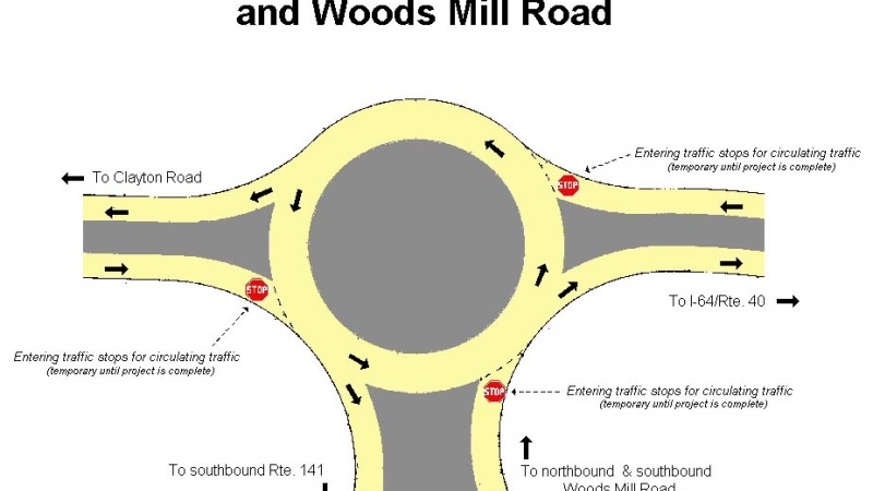 MoDOT constructed St. Louis's first roundabout at Route 141 and Woods Mill Road in 2002.