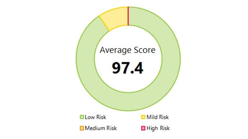 In the past, safety scorecards were used to show individual scores by vehicle. Since the inception of employee key fobs, the safety scorecards are now specific to each driver. Rates above 95% on the Driver Safety Scorecard indicate the driver is at low risk for an accident. MoDOT's overall driver safety average is 97.4% for the second quarter.