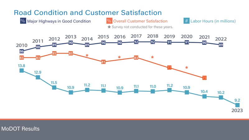 MoDOT has saved $582 million since 2007 by adjusting mowing and striping schedules, using innovative materials and equipment to fight ice and snow, reevaluating our snow route priorities and using incarcerated crews. This savings has been redirected back into improving the conditions of Missouri’s roads and bridges.
